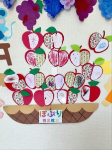 りんごはクレヨンで模様を描いてのりで貼りました☆