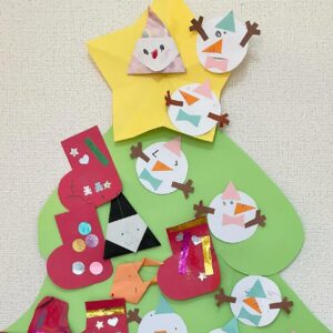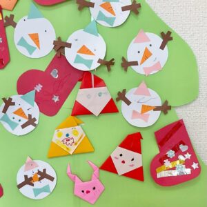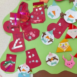 ハサミやのりを使ってサンタブーツ・雪だるまを作ったり、折り紙でサンタさん・トナカイさんを作りました♪